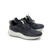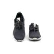 زوج من أحذية المشي السوداء ، مع تصميم منتظم ، تفاصيل الأربطة