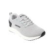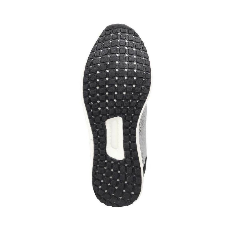 زوج من أحذية المشي الرمادية، وتصميم منتظم، وتفاصيل الأربطة