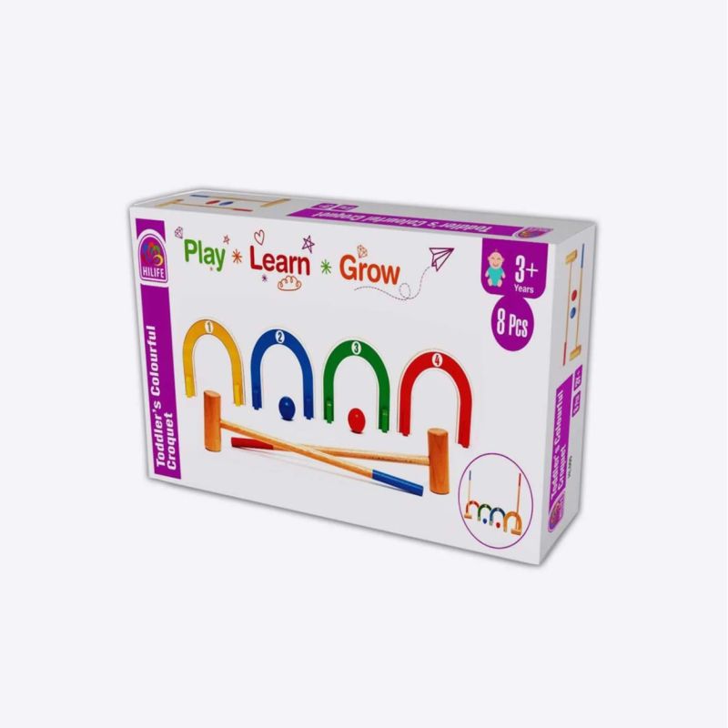 طقم الكروكيه الملون المكون من 8 قطع مصنوع من مواد غير سامة ومختبرة للسلامة وصديقة للأطفال.