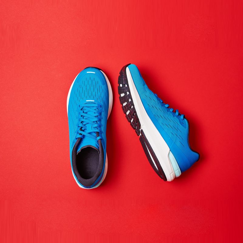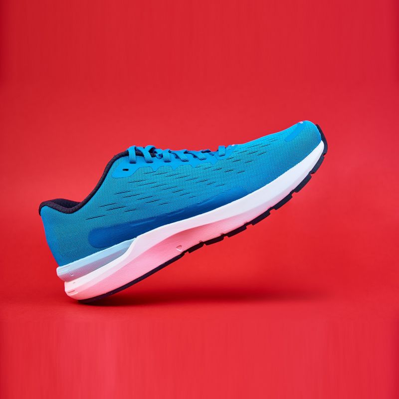 A pair of Blue walking shoes, has regular Styling, lace-ups detail