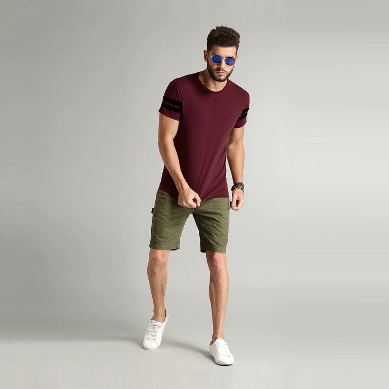 Men Maroon Curl Edge Cotton T-shirt
