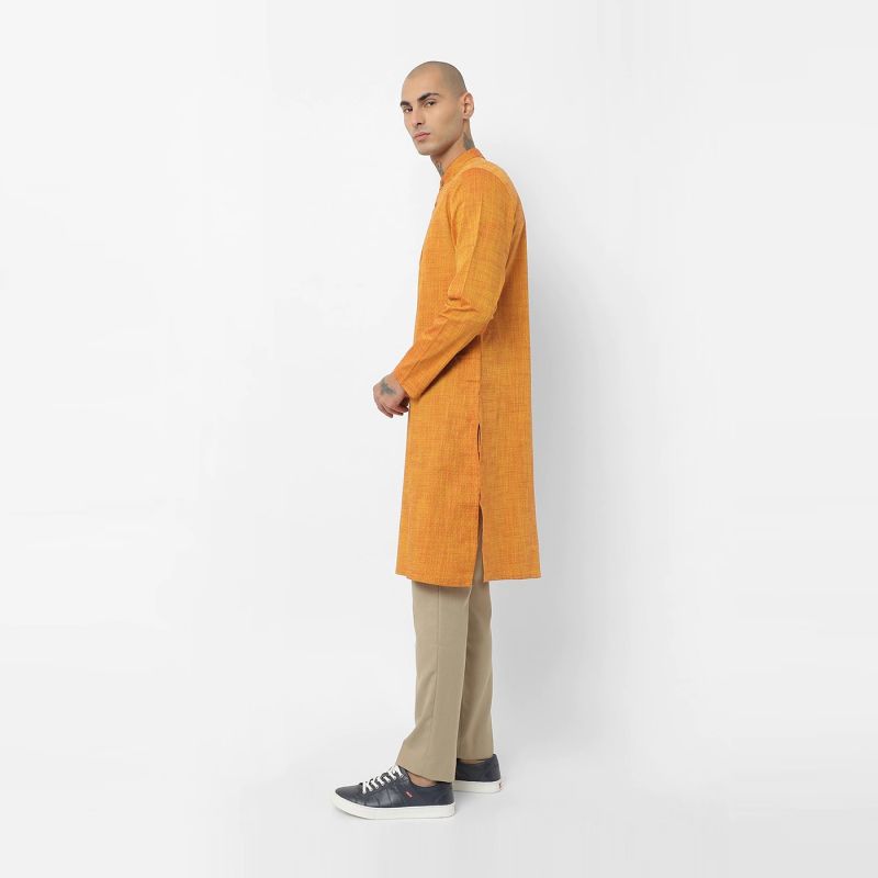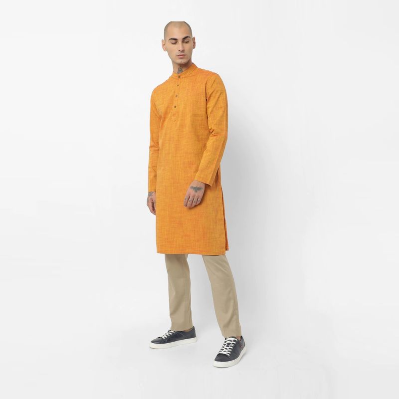 Flaunt your style with a kurta from Netplay. You'll look dapper as ever in this yellow piece paired with slim jeans and sandals, ideal for any nice family gathering.