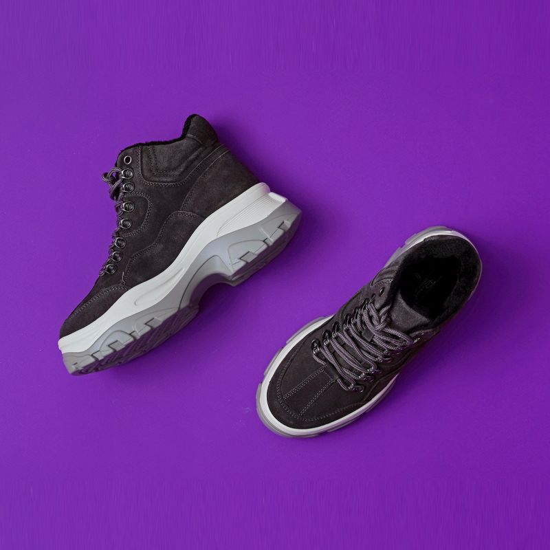 A pair of Black heeled boots ,has regular ankle and lace-ups