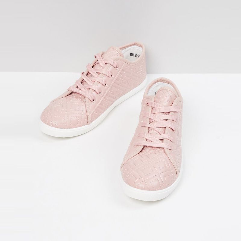 Women Pink Quilted PU Sneakers