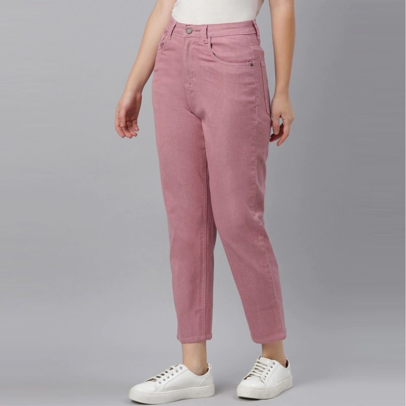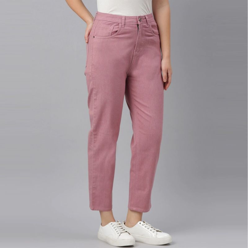 Women Pink Relaxed Fit High-Rise Stretchable Crop Jeans