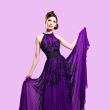 Purple solid maxi dress, has a V-neck, concealed zip closure, an attached lining, and flared hem