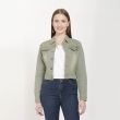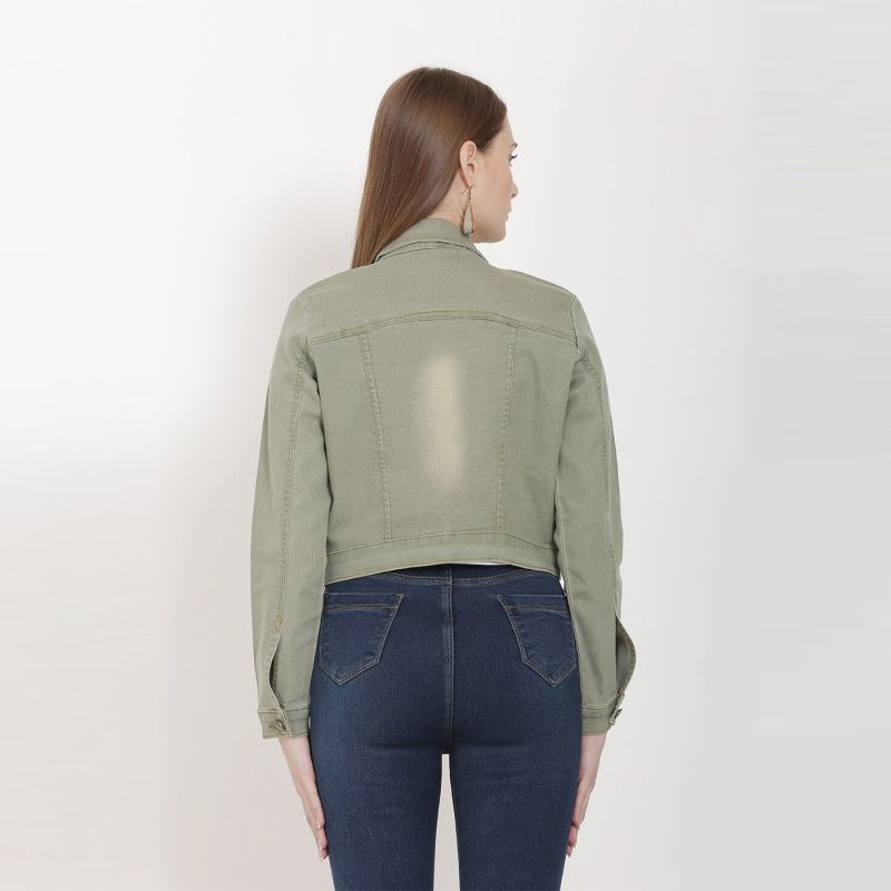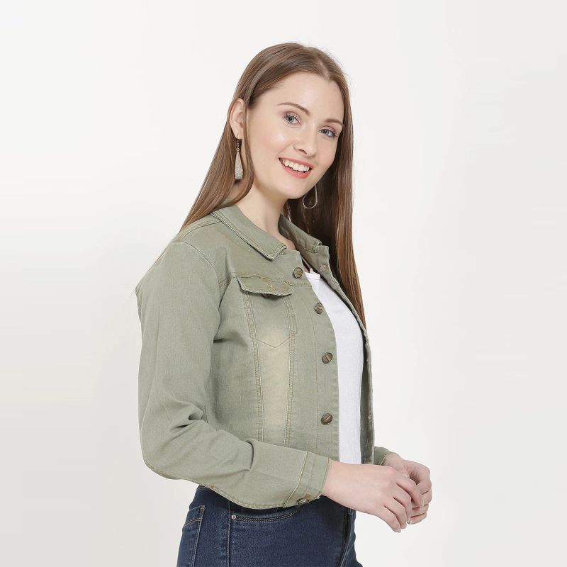 Washed Button-Down solid jacket, has a spread collar, 2 pockets, button closure, long sleeves, straight hem, and cotton.